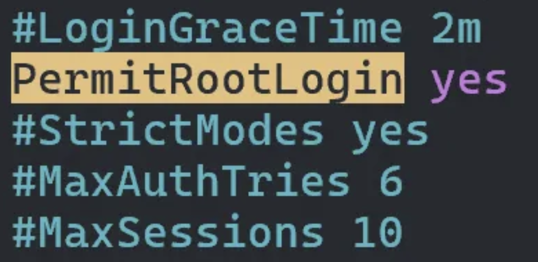 PermitRootLogin yes 부분을 작성해주고 저장하고 나옵니다.