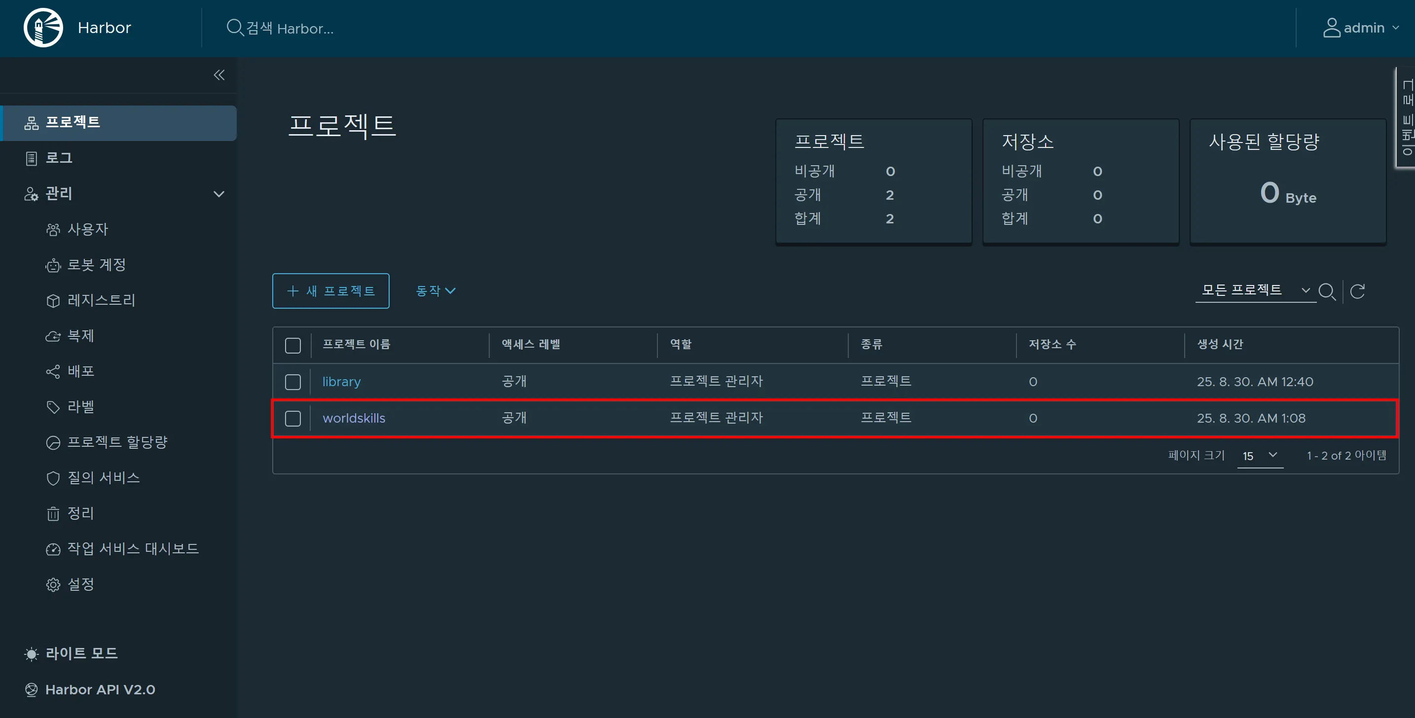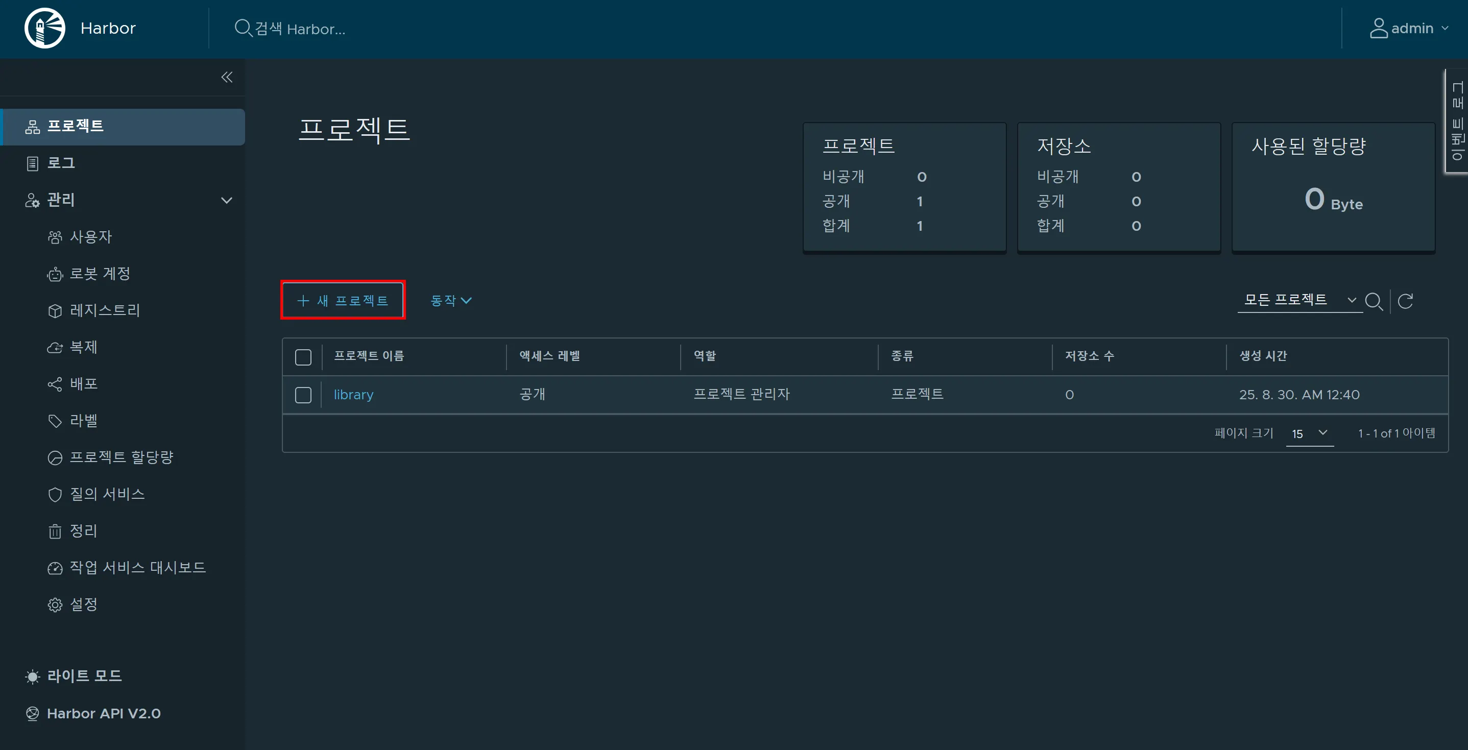push 명령어 후 Harbor에 가서 확인해보면 아래의 사진과 같이 이미지가 업로드 된 모습을 확인 할 수 있습니다.