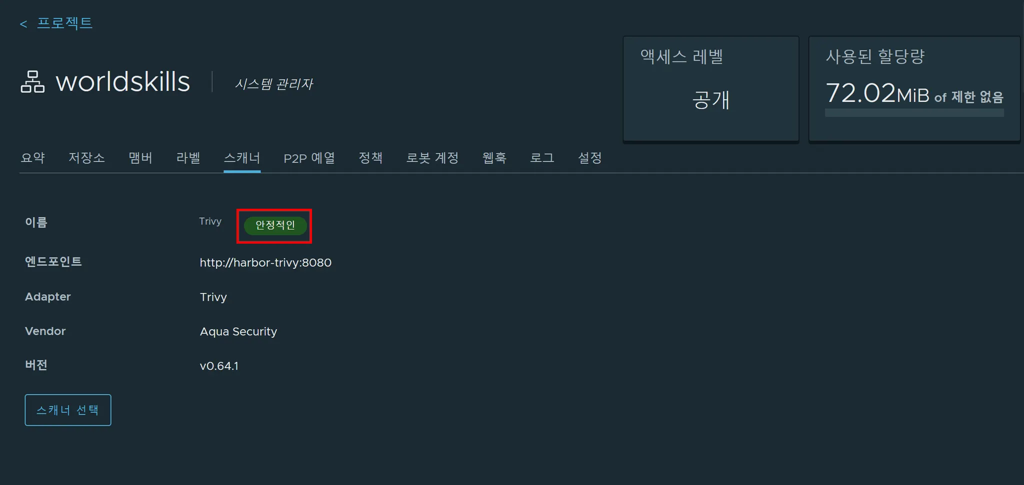 추가적으로 아래의 사진처럼 Harbor에서 Image 취약점 스캔도 가능합니다.