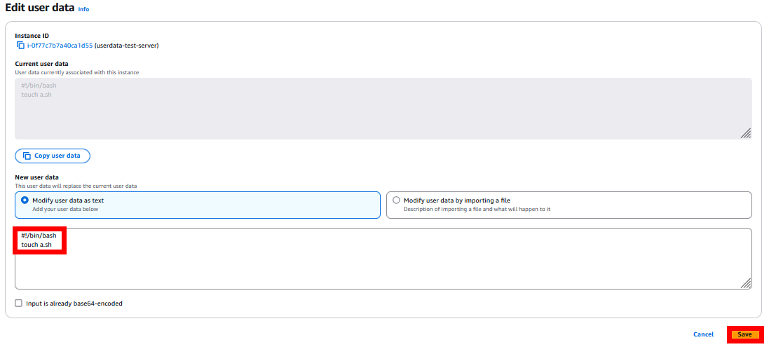 재시작시에도 userdata가 적용되도록 구성